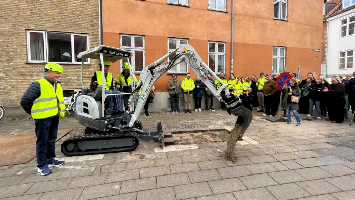 Der var børnehavebørn med flag, nysgerrige beboere og masser af fagfolk med gule sikkerhedshjelme for enden af Sct. Olai Gade, da der fredag blev taget første spadestik til projektet Helsingør Klimabykerne.